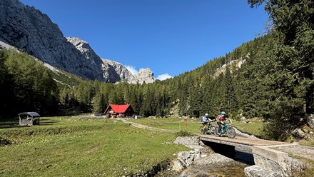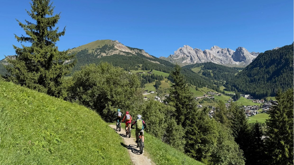 Heute geht es ins Herz der Dolomiten. Auf dem Talradweg rollen wir stets leicht bergauf ins Fassatal mit seinen legendären Skiorten. Die grandiosen Gipfel der Dolomiten tauchen auf: Rosengarten, Langkofel, Plattkofel und Sellastock. Von Canazei bringt uns die Seilbahn in unser 1900 Meter hoch gelegenes Berghotel. Wir genießen italienische Küche und das Mega-Panorama.