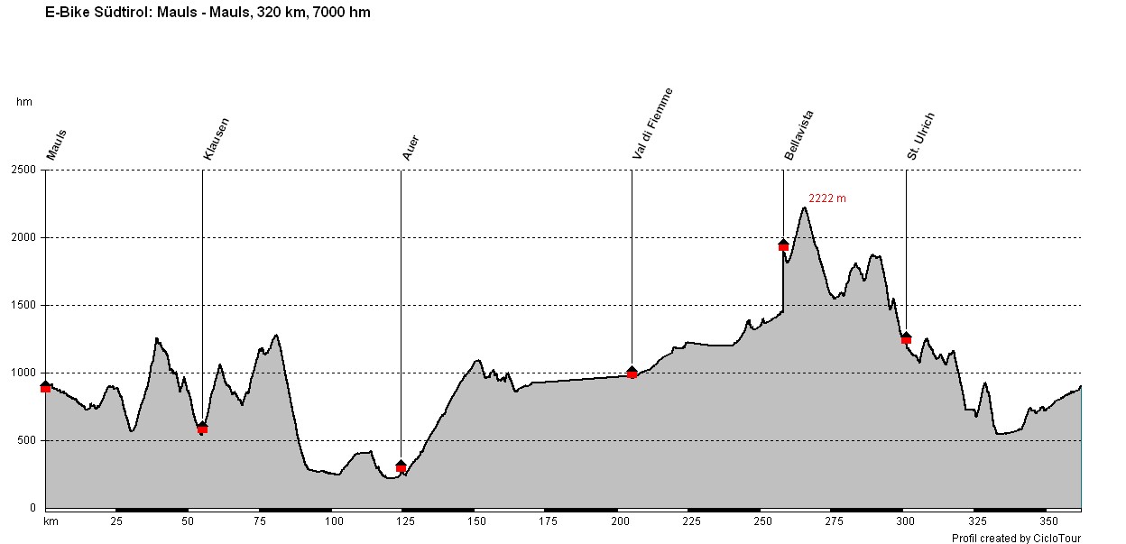 „Neue Trekkingrad Dimension. E-Antrieb, starke Akkus und SUV-Bikes mit breiten Reifen erlauben das Thema „Trekkingrad“ hochalpin zu denken. Wir bleiben auf befestigten Wegen, gehen aber Tagesetappen mit bis zu 1500 Höhen- und 1800 Tiefenmetern an. Damit ist die Südtirol-Runde unsere mit Abstand sportlichste Trekkingrad-Tour. Als Belohnung winken hochalpine Erlebnisse, legendäre Passstraßen und wirklich einzigartige Panoramen. Eine absolute Supertour.“