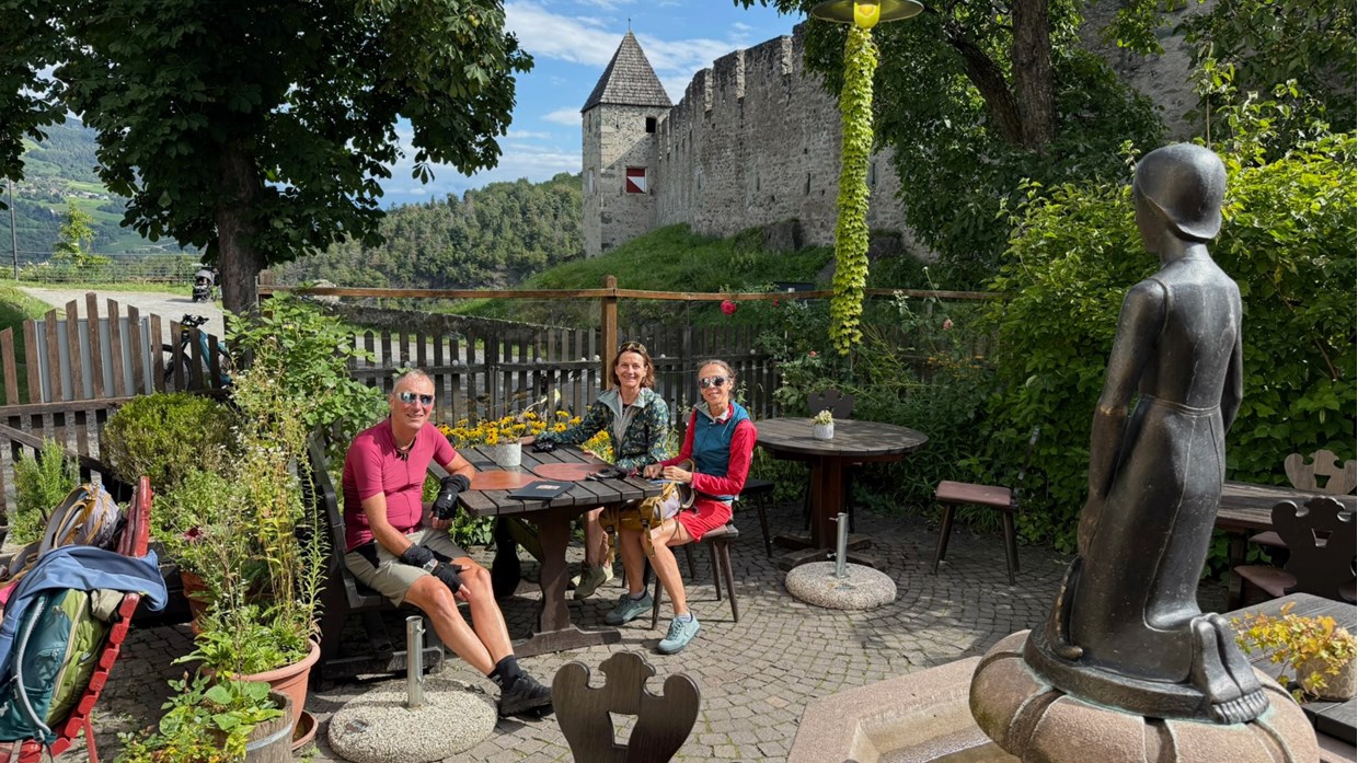 Auf einsamen Bergstraßen hoch über dem Eisacktal erleben wir heute ein noch sehr ursprüngliches Südtirol. Dann geht es an der Bischofsstadt Brixen vorbei ins uralte Kloster Neustift. Seit dem 12. Jahrhundert ein Ort der Besinnung und Kultur. Auf dem Eisacktalradweg erreichen wir unser Ziel, das Romantik Hotel Stafler in Mauls.