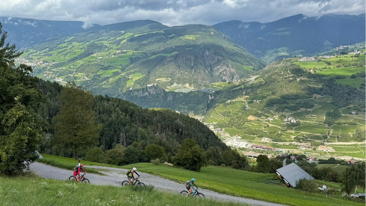 Auf dem Kaiserweg geht es hoch auf den Ritten. Wir genießen ein einzigartiges Panorama auf die Dolomiten. An Erdpyramiden vorbei geht es steil hinunter nach Bozen und auf einem Bahnradweg durch die Weinberge am Kalterer See nach Auer im Etschtal. Übernachtung in der Altstadt.