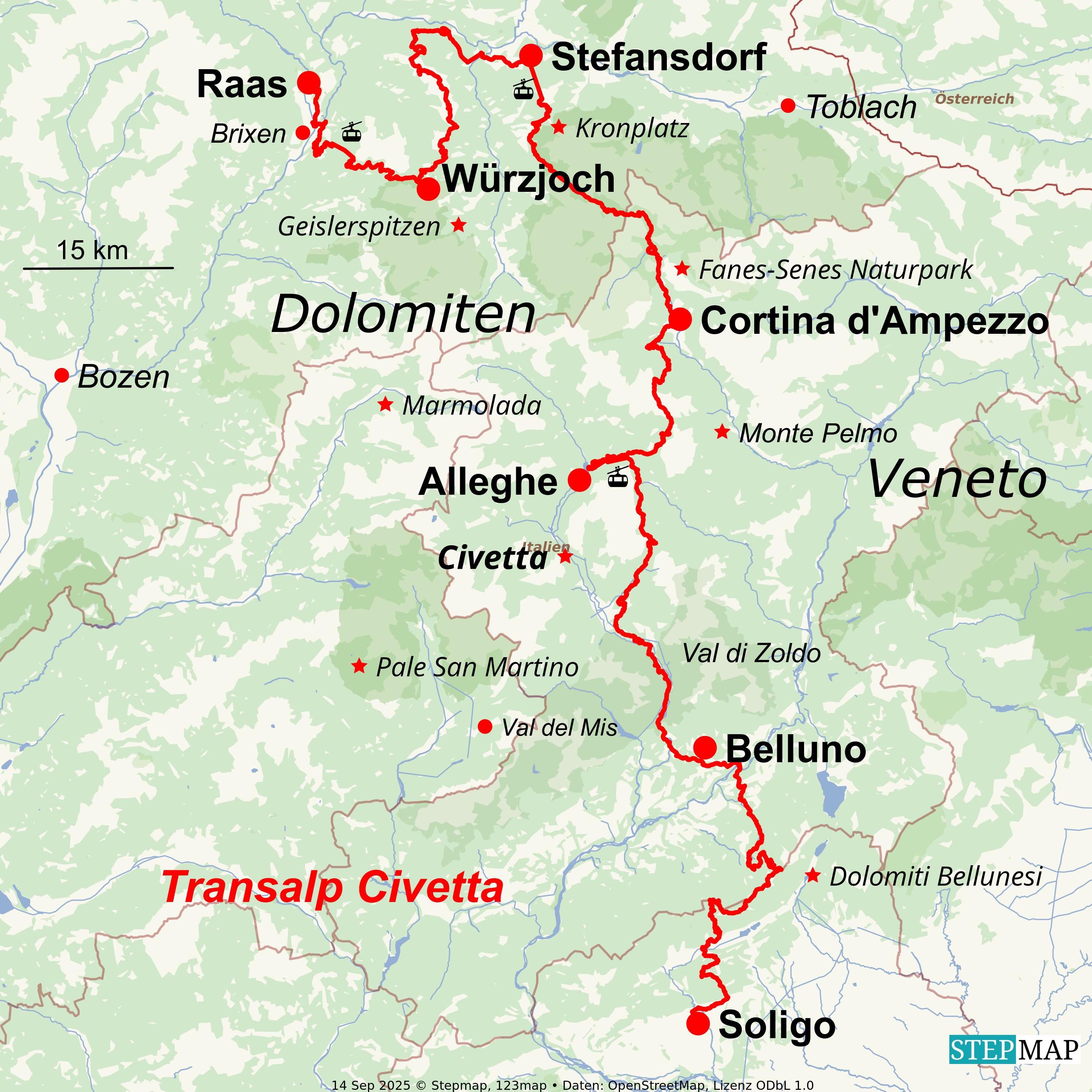 Die E-MTB Transalp Civetta ist das neue Highlight im sportlichen E-MTB Programm. Der Auftakt an der Plose und die Übernachtung direkt unterhalb des Peitlerkofels sind nur einige Highlights am Tag 1. Danach Trails oberhalb der Baumgrenze am Lüsener Joch, dem Kronplatz, im Fanes Gebiet. Ab Alleghe wird es für viele unbekannt. Civetta, Monte Pelmo, Val di Zoldo oder Val del Mis schon einmal gehört? Grande Finale dann in Belluno.