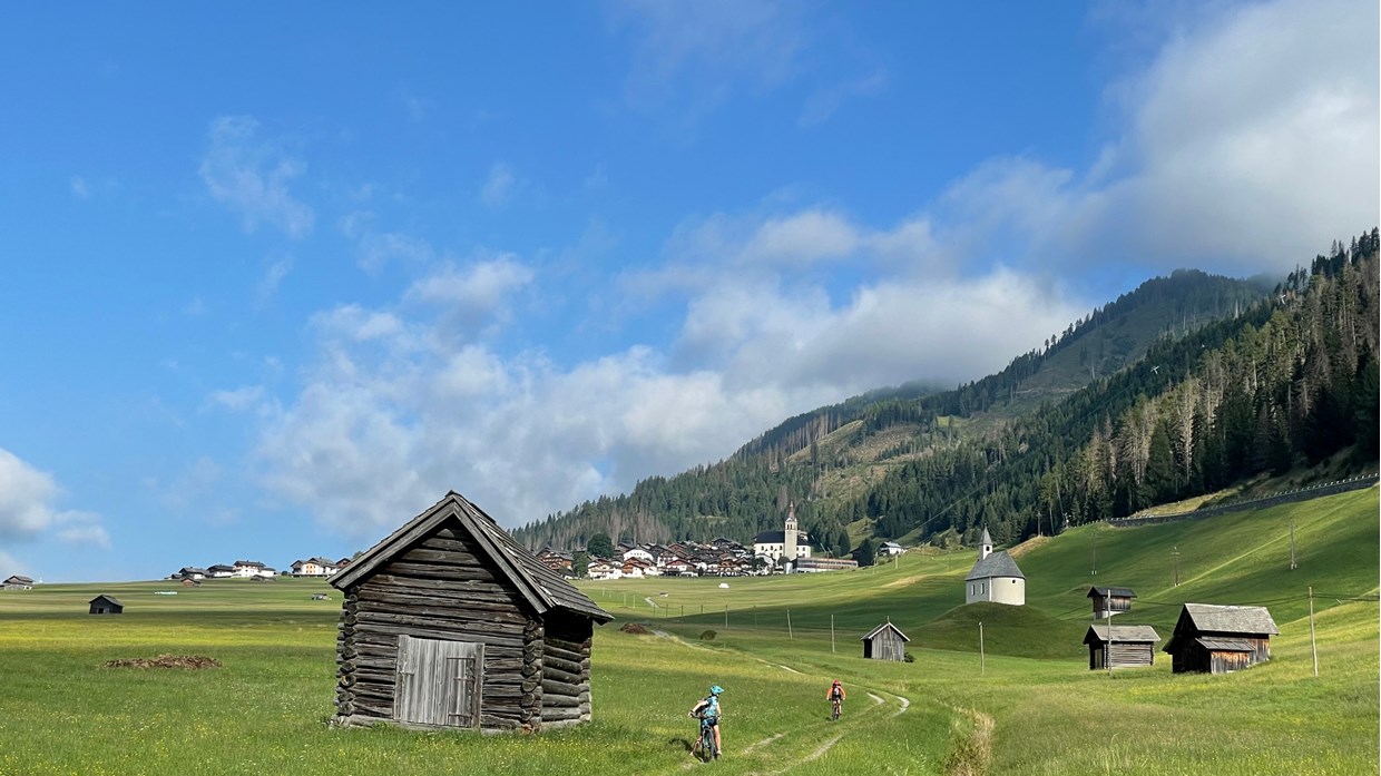 Die Tour startet gleich mit einer Königsetappe. Vom Pustertal geht es sofort in die Bergwelt der Dolomiten. Die 2000 Meter hoch gelegene Plätzwiese ist von legendären Bergen umrahmt. Hohe Gaissl, Monte Cristallo, Tofana und sogar die Drei Zinnen werden wir sehen. Auf einer alten Militärstraße geht es hinunter zur Trasse der alten Dolomitenbahn. Vorbei an blauen Bergseen erreichen wir unser Tagesziel Toblach. Aufteilung der Gruppe auf zwei Hotels gleicher Sternekategorie. Gemeinsames Abendessen in einem der Hotels.